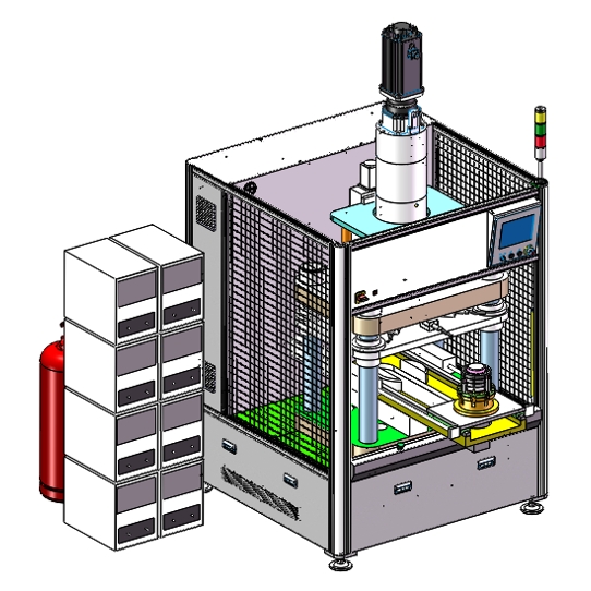 案例2:國內(nèi)要做中國博世的電動汽車核心零部件供應(yīng)商的電機產(chǎn)品。項目要求疊片裝配進行位移和力的過程監(jiān)控,通過伺服壓機的力和位移的精確控制,保證了電機疊片的壓裝厚度要求和輸出力的要求,同時在裝配設(shè)備中集成激光焊接機,伺服壓機集成系統(tǒng)的抗干擾設(shè)計保證了設(shè)備的可靠運行。